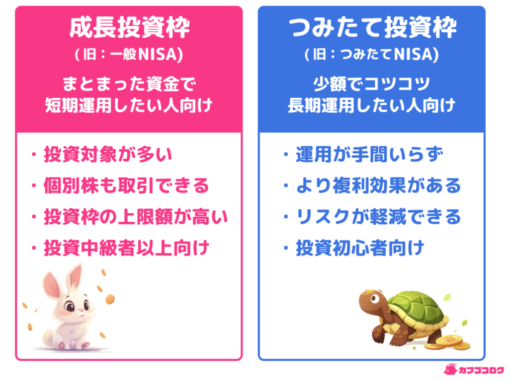 | 一般NISA | つみたてNISA | 成長投資枠 | つみたて投資枠 | |